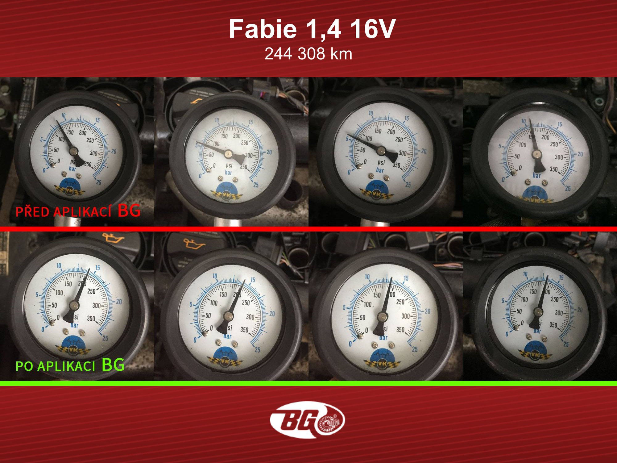 Měření kompresních tlaků před BG dekarbonizací a po BG dekarbonizaci. Jasně patrný nárůst kompresních tlaků = plný výkon, nižší spotřeba a emise.